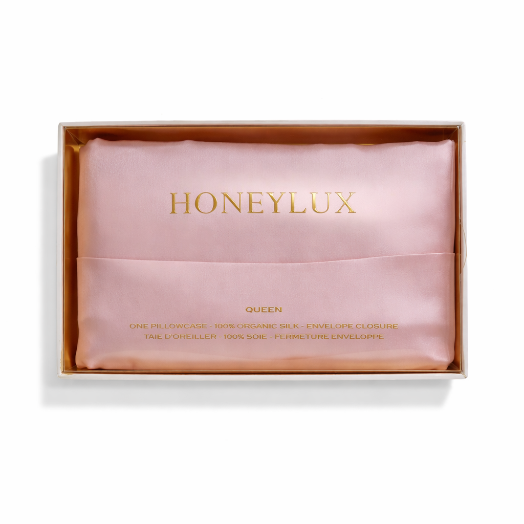 HoneyLux envelope style pillowcases use the highest grade (deluxe quality) of 6A 22momme mulberry silk and are delicate yet long-lasting for your beauty sleep. This real silk pillowcase helps with anti-acne and anti-aging and comes with a beautifully crafted gift box. Real silk is gentile and allows an easy glide on the skin. Cotton and other materials create friction and over time, contribute to wrinkles and tired eyes. Silk has amazing antibacterial properties and does not promote the growth of acne-causing bacteria.